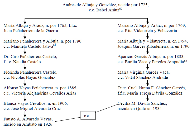 [11] Para la descendencia de Luis Enrique Alvarado Chávez, se agradece la información de Luis y Cecilia Alvarado Morales, desde Pelileo.